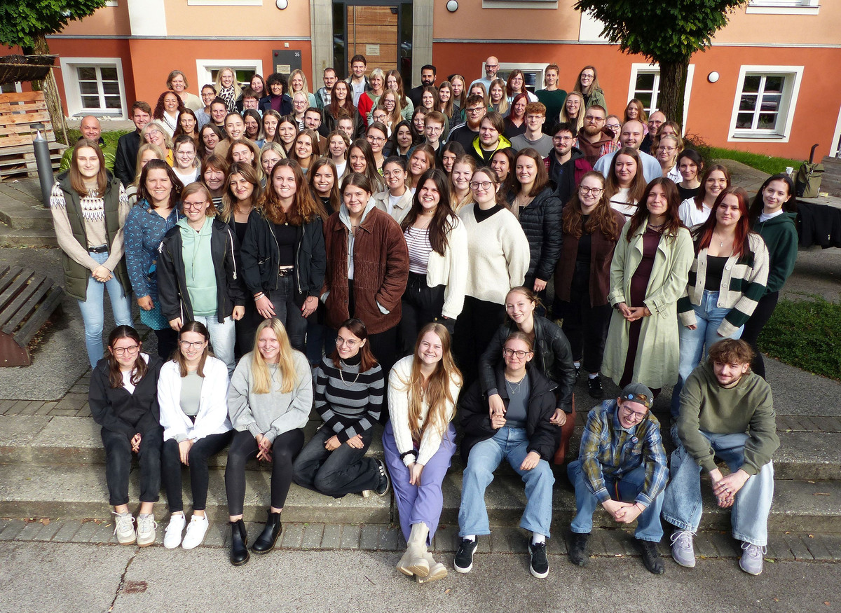 Rummelsberg. Für das Gruppenbild des diesjährigen Jahrganges musste extra eine 3m hohe Leiter aufgestellt werden. So viele Menschen machen sich in ihrem letztem Jahr auf den Weg: mit einwöchigen Seminaren Praxisbesuchen, Facharbeiten und dem Einsatz vor Ort in den Einrichtungen. Für die Fachakademie bedeutet das Mehraufwand, um diese Spitze auffangen zu können. Die Praxisbegleitung durch das Kollegium ist um mehr wie 30% gestiegen. Grund ist unter anderem die Verkürzung und Umstellung auf das Sozialpädagogische Einführungsjahr im Jahre 2021 um ein Jahr. So stehen nun zwei Jahrgänge bereit, die im nächsten Jahr 2025/26 aber nicht mehr sein werden. Es gilt diesen einmaligen Höhepunkt also in das normale Schulleben zu integrieren.