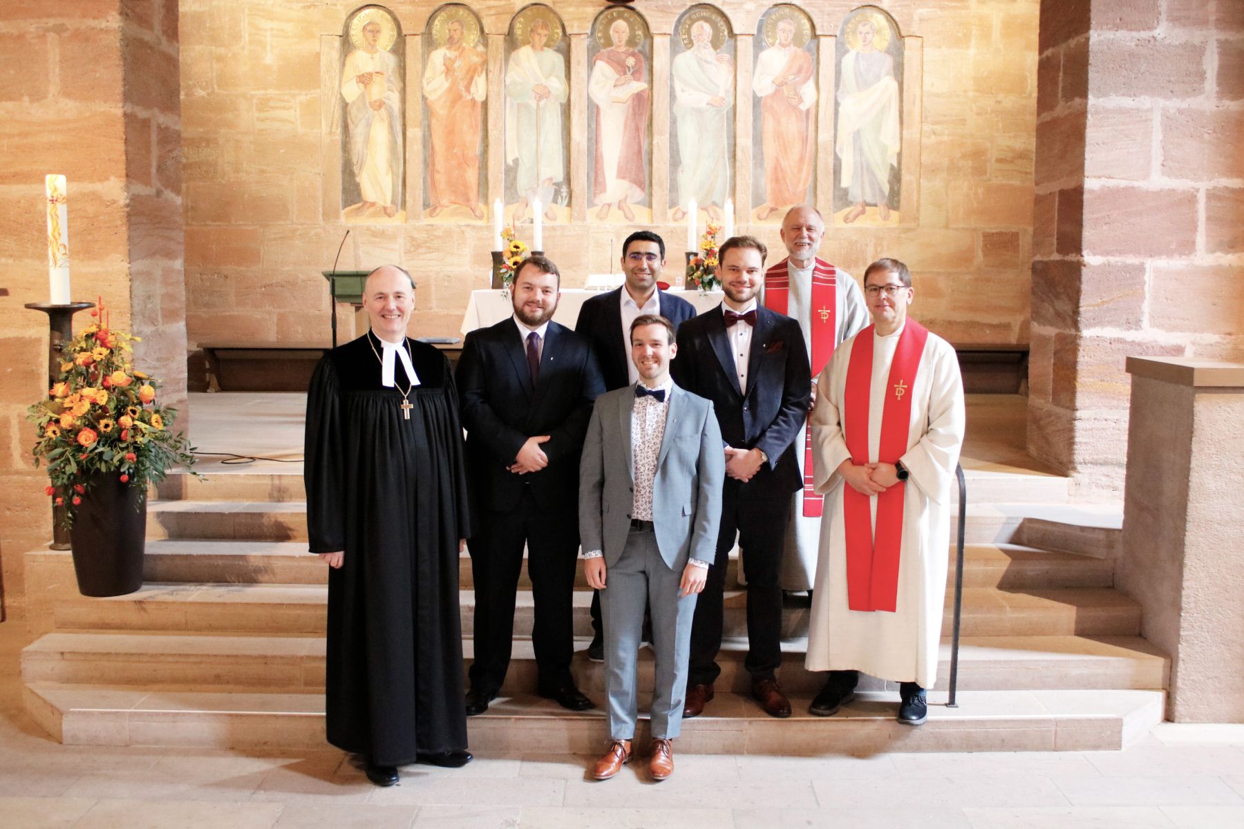 Seit September arbeiten sie in ihren jeweiligen Einsatzstellen in Diakonie und Landeskirche in Nürnberg, Bayreuth, Michelau und Weiden in der Oberpfalz. Der Leiter der Brüderschaft, Diakon Peter Barbian, führte gemeinsam mit Studierendenbegleiter Diakon Frank Grohmann durch den Gottesdienst. Der Brüdersenior nahm in seiner Ansprache Bezug zur 130-jährigen Geschichte der Rummelsberger Brüderschaft und hielt die jungen Diakone dazu an, mit ihrem Dienst weiter an dieser zu bauen.