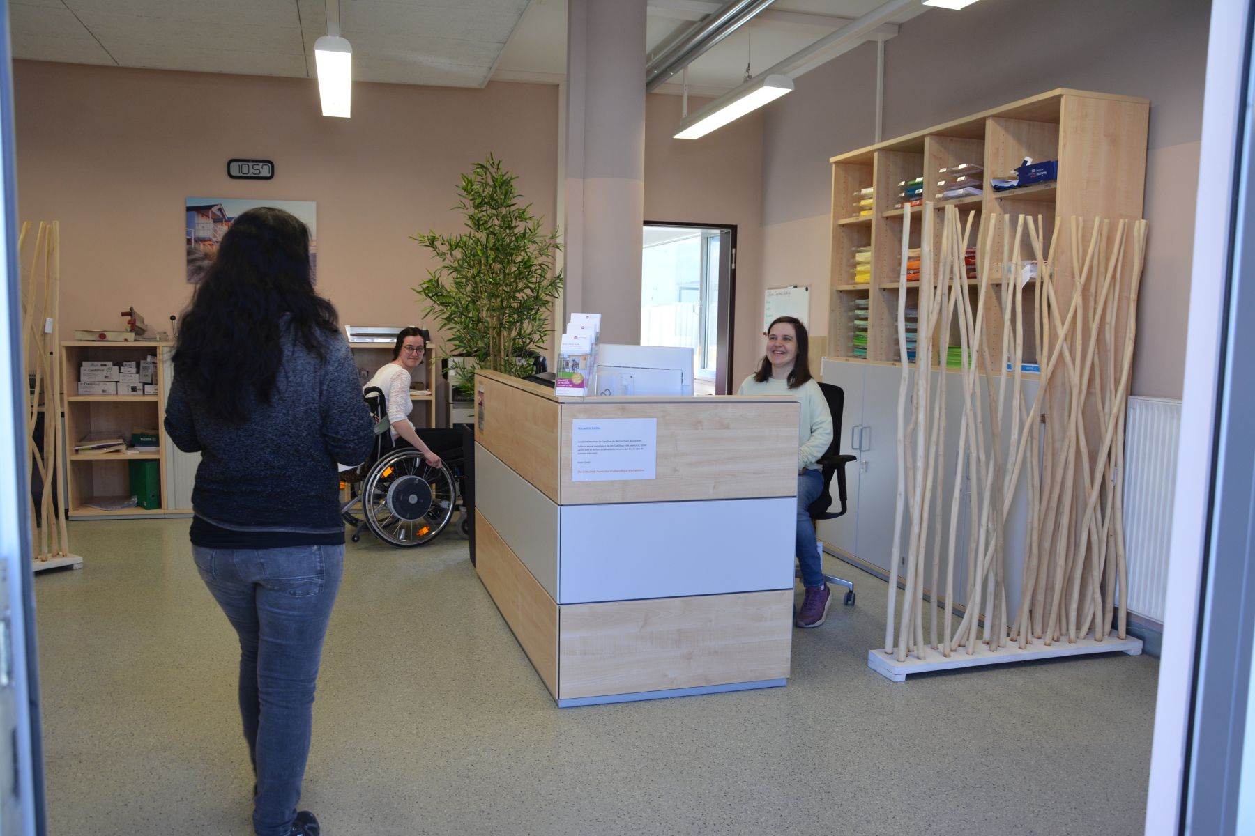 Wie fühlt es sich an, selber eingeschränkt zu sein? Interessierte haben die Möglichkeit, selbst Tätigkeiten mit einem Rollstuhl oder anderen simulierten Einschränkungen auszuprobieren und so eine Vorstellung vom Arbeitsalltag unter erschwerten Bedingungen zu gewinnen.